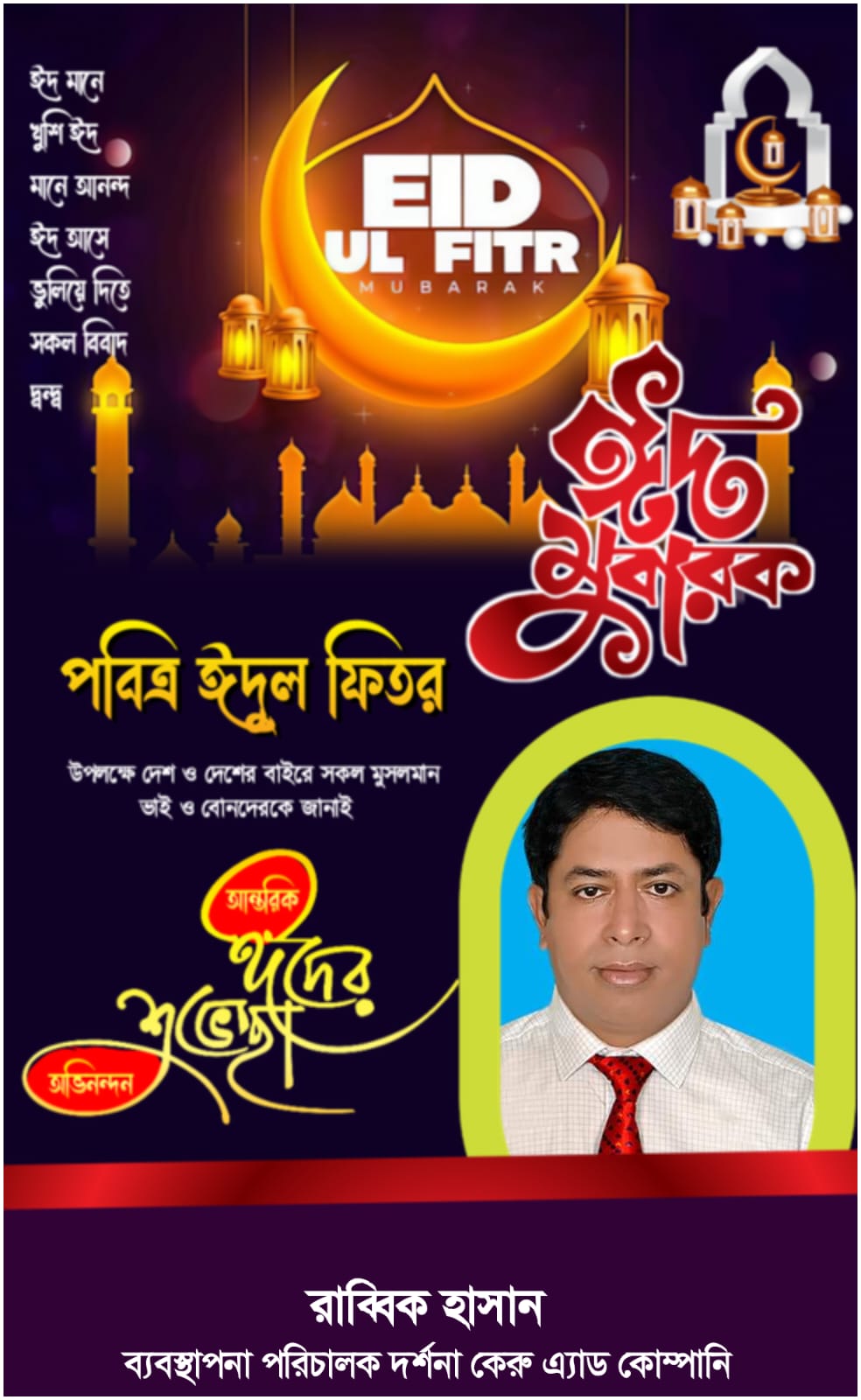 পারকৃষ্ণপুর-মদনা ইউনিয়নের সর্বস্তরের জনগণকে জানায় পবিত্র ঈদুল ফিতরের শুভেচ্ছা:আশরাফুল হক বিপ্লব