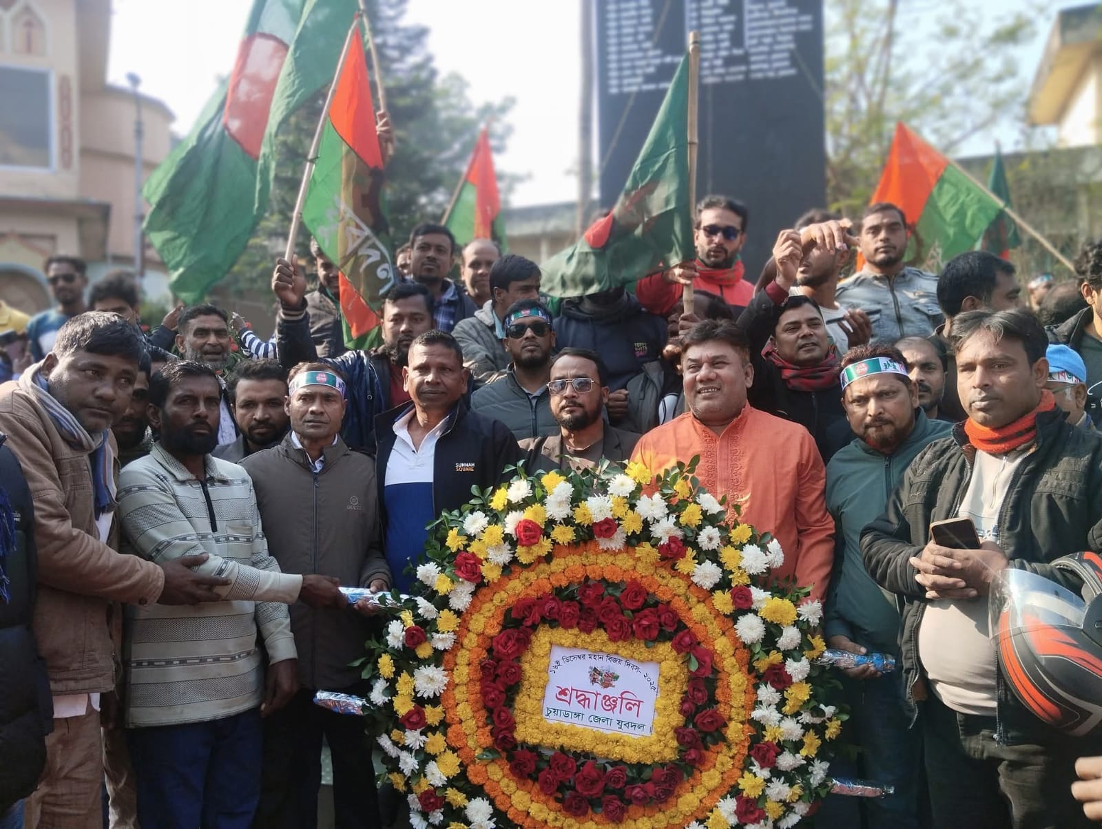এ সময় প্রধান অতিথি হিসেবে সংক্ষিপ্ত বক্তব্যে জাতীয়তাবাদী দল চুয়াডাঙ্গাজেলা যুবদলের সংগ্রামী ও বিল্পবী সভাপতি শরীফ উর জামান সিজার বলেন, মহান বিজয় আমাদের শিখিয়েছে গণতন্ত্র, স্বাধীনতা ও মানুষের অধিকার প্রতিষ্ঠার সংগ্রাম। এই বিজয়ের চেতনাকে ধারণ করেই আমাদের একটি ন্যায়ভিত্তিক, গণতান্ত্রিক এবং জনগণের কল্যাণে নিবেদিত বাংলাদেশ গড়ে তুলতে হবে। তিনি আরও বলেন, মুক্তিযুদ্ধের আদর্শ বাস্তবায়নে সবাইকে ঐক্যবদ্ধভাবে কাজ করতে হবে এবং দেশকে সামনের দিকে এগিয়ে নিতে গণতান্ত্রিক মূল্যবোধ প্রতিষ্ঠার বিকল্প নেই।