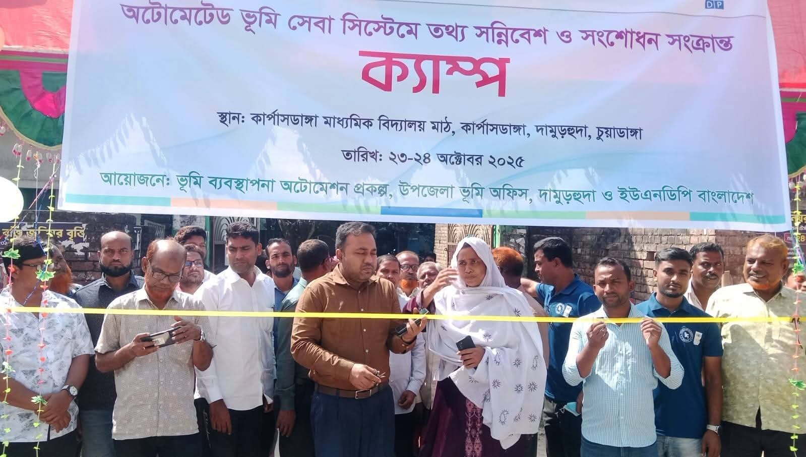 দামুড়হুদা উপজেলার কার্পাসডাঙ্গা ও পারকেষ্টপুর-মদনা ইউনিয়নে পৃথকভাবে অটোমেটেড ভূমি সেবা সিস্টেমে তথ্য সন্নিবেশ ও সংশোধন সংক্রান্ত দুই দিনব্যাপী ক্যাম্পেইনের উদ্বোধন করা হয়েছে। বৃহস্পতিবার সকাল ১০টার দিকে সহকারী কমিশনার (ভূমি) ও নির্বাহী ম্যাজিস্ট্রেট কে. এইচ. তাসফিকুর রহমানের সভাপতিত্বে কার্পাসডাঙ্গা মাধ্যমিক বিদ্যালয়ে এবং দুপুর ১২টার দিকে ছয়ঘরিয়া সরকারি প্রাথমিক বিদ্যালয় প্রাঙ্গণে ক্যাম্পেইনের উদ্বোধন করেন তিনি। উদ্বোধন শেষে সরাসরি এসিল্যান্ডের কাছ থেকে হাতে-কলমে পরামর্শ ও সেবা পেয়ে খুশি হন একাধিক জমির মালিকসহ সেবা গ্রহীতারা।
