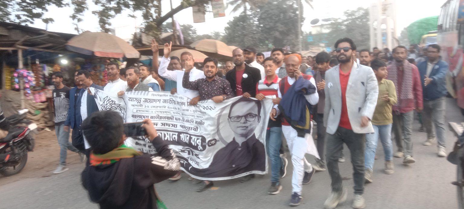 জীবননগর শহরে ধানের শীষের পক্ষে প্রচার মিছিল