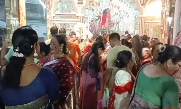 আলমডাঙ্গায় বিদায়ী সুরে ঢাকের সাথে উলুধ্বনিতে দূর্গার বিসর্জন