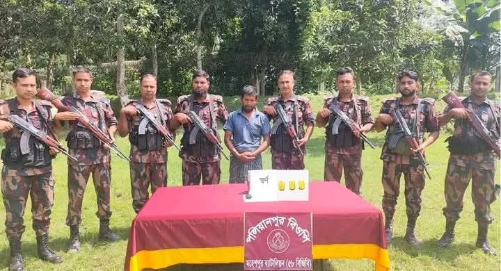মহেশপুর সীমান্তে ৩টি স্বর্ণের বারসহ চোরাকারবারি আটক
