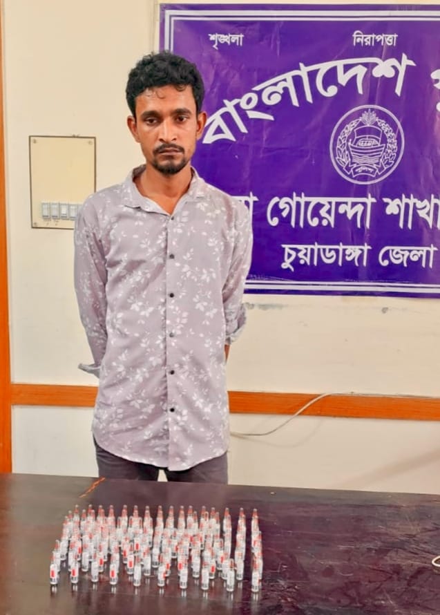 চুয়াডাঙ্গায় ডিবি পুলিশের অভিযানে ১১০ অ্যাম্পুল প্যাথেড্রিনসহ গ্রেফতার-০১ জন