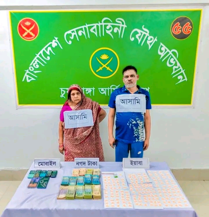 শিমুল রেজা চুয়াডাঙ্গা পৌর এলাকায় সেনাবাহিনী ও পুলিশের যৌথ অভিযানে বিপুল পরিমাণ ইয়াবা ও নগদ টাকাসহ মাদকসম্রাজ্ঞী খ্যাত মোছা.