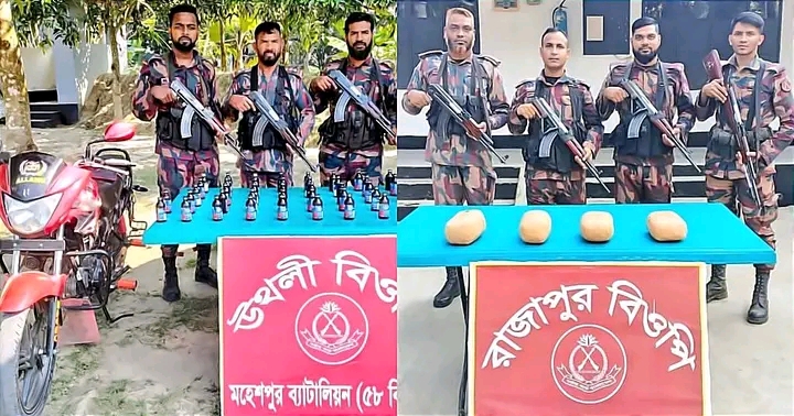 চুয়াডাঙ্গার জীবননগরে সীমান্তে মাদকবিরোধী পৃথক অভিযান চালিয়ে মালিকবিহীন অবস্থায় ১টি মোটরসাইকেলসহ ৫৭ বোতল ভারতীয় ফেন্সিডিল ও ৪ কেজি গাঁজা