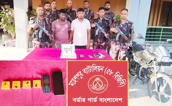 ঝিনাইদহের মহেশপুর সীমান্ত থেকে প্রায় ৪ কোটি টাকার স্বর্ণের বারসহ সৌরভ বিশ্বাস (২৫) ও রনজিৎ বিশ্বাস নামের দুই চোরাকারবারিকে