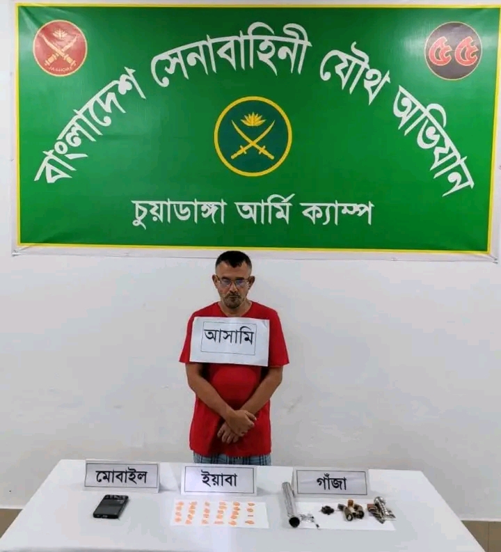 চুয়াডাঙ্গার দর্শনায় সেনাবাহিনী ও পুলিশ যৌথ অভিযান চালিয়ে ২৬৩ পিস ইয়াবা ও এক পুরিয়া গাঁজাসহ মাহাবুব আলম পলাশ নামে