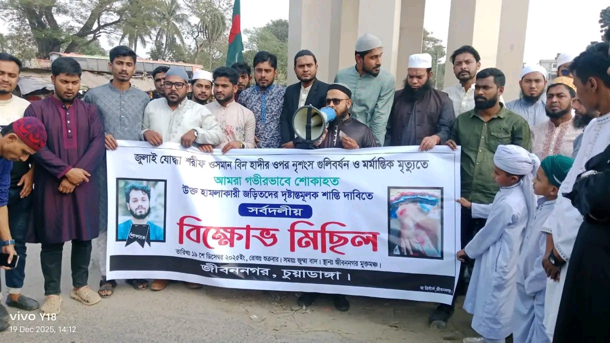 জীবননগরে ওসমান হাদী হত্যাকারীদের দৃষ্টান্তমূলক শাস্তির দাবিতে বিক্ষোভ সমাবেশ