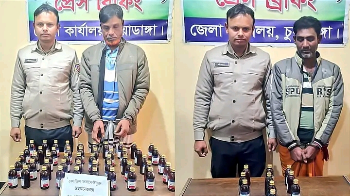 জীবননগরে মাদকদ্রব্য নিয়ন্ত্রণ অধিদপ্তরের অভিযান, ৬০ বোতল উইনসেরেক্সসহ আটক ২